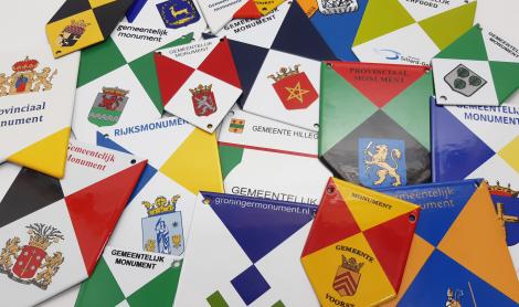 We produce enamel monument shields on behalf of municipalities and government institutions. Of course we produce these in the house style of the relevant Municipality, often also with the municipal coat of arms. There are different types of monuments: National monument, Municipal monument, Provincial monument, Archaeological monument, Protected cityscape, Protected townscape. Since 2013, a new model of monument shield has been released. Applications for this are made exclusively through the ANWB. They take care of the distribution and sale, this is done on behalf of the Cultural Heritage Agency of the Netherlands.