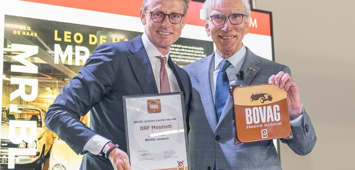 Dutch museums that are dedicated to preserving and showcasing mobile heritage and are well worth a visit may qualify for a BOVAG recognition. This recognition is nothing less than a vintage enamel sign with the text "BOVAG recognized museum." BOVAG initiated this in 2023, and it is expected that this list will only grow, as the Netherlands is home to many interesting and high-quality museums. An award in the form of a vintage enamel sign naturally fits perfectly with this. The DAF Museum was the first to receive this recognition.